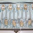 A set of twelve .830 silver coffee spoons, each with twisted stem and deer hoof terminal, cased, together with another set of twelve Dutch silver coffee spoons, cased.