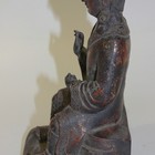 A Chinese iron red and gilt patinated bronze figure, late 19th Century, modelled in a seated pose, height approx 24cm.