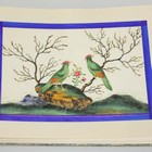 An album of twelve Chinese Canton export watercolour paintings on rice paper, mid-19th Century, eight depicting studies of birds perched on blossoming branches, and four with studies of flowers and butterflies, image size approx 15.5cm x 23.5cm (minor faults).
