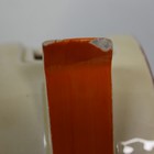 A Clarice Cliff Fantasque Stamford shape teapot and matching conical teacup, each decorated with Orange Gardenia pattern (teapot lacking cover and chipped, cup broken and repaired).