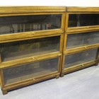 A pair of early 20th Century oak Globe Wernicke three section bookcases on stepped block feet, height approx 105cm, width approx 85cm, depth approx 28cm.