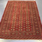 A Pakistan bokhara rug, mid/late 20th Century, the plum field with overall rows of guls, within a sunburst gul border, approx 185cm x 129cm.