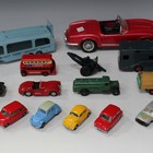 A Dinky Supertoys horse box, a No. 982 Pullmore car transporter, a Bedford refuse wagon, a 25 series petrol tanker, a Britains field gun and eleven other vehicles (some playwear, horse box repainted).
