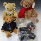 A modern Steiff 1959-2009 black mohair teddy bear with gilt button and tab in left ear, amber and black eyes, stitched snout and jointed body, height approx 36cm, sealed in a bag with instruction booklet, together with three other teddy bears.