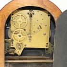 Two Art Deco walnut cased mantel clocks, each with eight day movement chiming on gongs and striking on a gong, heights approx 21cm and 22cm, with two pendulums and two winding keys, together with a mahogany mantel timepiece.