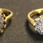 An 18ct gold, opal and diamond oval cluster ring, claw set with the oval opal within a surround of circular cut diamonds, and a gold and diamond set cluster ring, mounted with the principal circular cut diamond within a surround of small circular cut diamonds.
