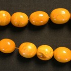 A single row necklace of thirty graduated oval mottled opaque honey coloured amber beads, gross weight approx 57.2g, length approx 48cm, length of largest bead approx 2.3cm, length of smallest bead approx 1cm.