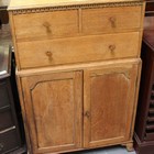 A George V oak tallboy by Waring & Gillow Ltd, fitted with three drawers and a cupboard, on splayed bracket feet, height approx 114cm, width approx 77cm.
