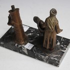 An early 20th Century cold painted cast spelter table lighter in the form of an Arab carpet seller, mounted on a marble base, height approx 12cm.