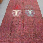 An early 20th Century woven shawl of Paisley design, probably Indian, the central field with four polychrome panels within a stylized boteh surround, approx 306cm x 150cm, together with two printed cotton kimonos.