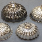 A set of four Victorian plated graduated lobed oval meat domes, each with a detachable naturalistic and ropetwist handle above engraved strapwork and fleur-de-lis decoration and a ropetwist rim, all bearing date registration lozenge for 1859 by Thomas Bradbury & Sons, heights approx 32cm, 30cm and two 26cm.