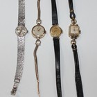 A Tissot 9ct white gold lady's bracelet wristwatch, the signed circular silvered dial with black baton shaped numerals on a textured tapering brick-linked bracelet with a fold-over clasp, a Universal gilt metal circular cased lady's wristwatch on a 9ct gold Brazil link bracelet with a folding clasp, a Longines 9ct gold circular cased lady's wristwatch and a Stowa gilt metal fronted lady's wristwatch.
