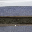 A 19th Century steel, brass and iron mounted fender of neoclassical design, the frieze embossed with a rosette, swags and fluting, the comer supports with urn finials, width approx 137cm.