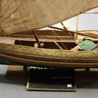 An early 20th Century wooden model of a dhow with cloth sail and half-painted hull, length approx 77cm, together with a related book.