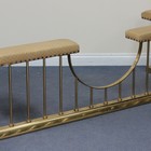 A late 20th Century brass club fender, the seat upholstered in a patterned fabric, height approx 56cm, width approx 200cm.