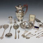 A George V silver desk calendar of rectangular form with engine turned decoration, Birmingham 1927 by Deakin & Francis Ltd, together with a small collection of assorted plate.