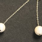 A platinum and cultured pearl necklace, the front with two graduated drops with single cultured pearl terminals, with an oval surmount above, the oval link neckchain with a boltring clasp.