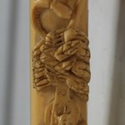 A 19th Century parasol, the ivory handle carved with a group of harvesting regalia, together with a porcelain handled parasol and an Oriental parasol.