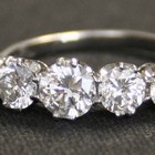 An 18ct white gold and diamond five stone ring, claw set with circular cut diamonds graduating in size to the centre stone, detailed '18ct'.