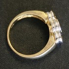 A 9ct gold and diamond set three stone ring, mounted with a row of circular cut diamonds, the principal diamond mounted at the centre.