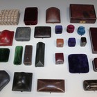 Twenty-five Victorian and later jewellery boxes and cases, comprising a Liberty rectangular box with textile decoration, seven ring boxes, four brooch boxes, three stick pin boxes, a box for a bracelet, a French box for a pair of earrings, a box for a pair of cufflinks and dress studs, and seven further boxes and cases.