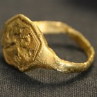 A gold signet ring, probably 16th or 17th Century, the octagonal bezel engraved with a griffin motif, initial engraved 'M' beneath the bezel, weight approx 4.2g.