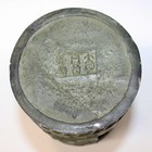 A Japanese brown patinated bronze vase, 20th Century, of baluster form, the neck and shoulder cast in relief with a drip effect design, above a textured body on a circular foot, height approx 22.5cm, together with a bronze teapot and cover with naturalistic overhead handle, the squat body cast with vines, cast seal mark to base, height approx 12.5cm, and a green patinated cylindrical brush pot, decorated in relief with figures, cast mark to base, height approx 10.7cm.