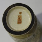 A pair of Japanese Satsuma earthenware vases, Meiji period, painted with figural panels against a blue and gilt ground, height approx 12cm, together with another Satsuma vase, Meiji period, painted and gilt with bijin and arhats, height approx 12.5cm, and a Satsuma cup and saucer painted with flowers.