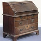 A George III oak bureau, the fall flap revealing a fitted interior of drawers and pigeonholes above two short and two long drawers, on bracket feet, height approx 102cm, width approx 96cm (faults).