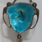 An Art Nouveau blue/green enamelled and blister pearl pendant of pierced openwork design with a freshwater pearl drop, length approx 5cm, together with a similar brooch, designed as a pair of wings with a mabé pearl at the centre, width approx 6.3cm (no marks).