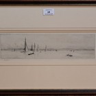William Lionel Wyllie - Sailing J Class, early 20th Century monochrome etching, signed in pencil, approx 10cm x 34.5cm.