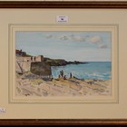 Gyrth Russell - 'Cemaes Bay', 20th Century watercolour with ink, signed and titled, approx 21.5cm x 31.5cm, within a gilt frame.