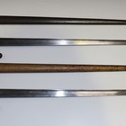A French model 1874 Gras bayonet, the blade marked 'St. Etienne 1878', in its steel sheath, and a similar bayonet, the blade marked L. Deny Paris 1880', hilt part painted gold, in its gold painted steel sheath.