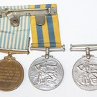A Korea Medal, detailed '22202346 Pte. W. Milburn. MX.' (with attempted erasure of the naming), a United Nations Medal with bar 'Korea', mounted on a bar, and a Korea Medal to 'D/SKX. 891888 D.G. Williams S.M R.N' (filing marks at the end of the surname).