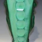 An Art Deco malachite glass vase, in the manner of Heinrich Hoffmann, of octagonal tapering form, moulded in relief with opposing panels of a nude maiden representing night and day, unmarked, height approx 23cm.