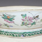 A Chinese famille rose porcelain footed bowl, mark of Tongzhi and probably of the period, the lozenge shaped body enamelled to the exterior with scattered blossoming branches and insects, the foot with a green wave band, iron red painted seal mark to base, length approx 27cm.