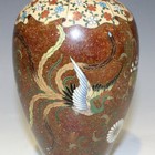 A Japanese cloisonné vase, Meiji period, the ovoid body decorated with two ho-o birds and flowers on a goldstone ground, within flower filled borders, height approx 15.2cm.