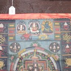Two Tibetan thangkas, 20th Century, the first painted with a four-armed blue Mahakala within a surround of further deity, approx 73cm x 51cm, the other with Wheel of Law and central Bodhisattva within a surround of furtive Bodhisattva and Buddhistic emblems, approx 51cm x 38cm, each with silk mounts.