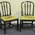 A pair of George III mahogany dining chairs, the moulded backs above drop-in seats, raised on block legs united by stretchers.