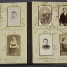 PHOTOGRAPHS. A leather-bound album containing approximately 60 cartes-de-visite and cabinet-size photographs, all portraits, the album with thick card leaves, some with chromolithographic surrounds.