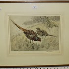 Henry Wilkinson - Cock and Hen Pheasant, colour etching, signed and editioned 44/150 in pencil, approx 27.5cm x 36cm.