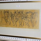 Dolf Rieser - Figures dancing with Shields, colour etching, signed and numbered 19-25 in pencil, approx 25cm x 51cm.