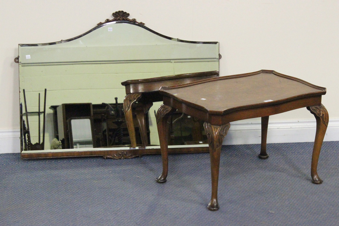 An early 20th Century Queen Anne style walnut occasional table, width approx 62cm, together with a similar wall mirror.