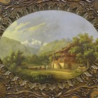 A late 19th Century Swiss Black Forest carved softwood tip-top occasional table, stamped 'C.G. Brunner in Bönigen', the oval top with a painted central reserve landscape, titled 'Mallen', within a carved foliate border with a continuous band of oval reserve panels, each painted with a figure, raised on a carved acanthus stem and tripod legs, height approx 72cm, width approx 70cm.