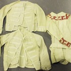 A group of mainly Victorian and Edwardian children's clothing, including seven dresses, two broderie anglaise white cotton pinafores and two boys' linen jackets with cotton braid trim of waistcoat design.