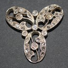 A diamond set brooch in an open work trefoil shaped design, mounted with cushion shaped and rose cut diamonds, width approx 3.4cm.