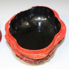 A Chinese cinnabar lacquer box and cover, 18th Century, of ruyi head form, the top carved in relief with Shoulao and attendant boy against a wave ground, within borders of further waves and the eight Buddhistic emblems, length approx 14cm (some faults).