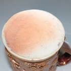 An English salt glazed brown stoneware tankard, late 18th Century, probably Mortlake, the cylindrical body sprigged with a stag hunt around a rectangular panel of gentlemen drinking punch, all beneath a silver rim, height approx 17cm.