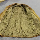 A mid-20th Century brown hide three-quarter length coat with gilt metal double-breasted buttons, length approx 110cm, together with a matching hat and an astrakhan fur coat.