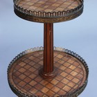 A pair of mid-19th Century Neoclassical Revival kingwood and gilt metal mounted two-tier étagères, each level inlaid with an overall lattice within pierced galleries and rims cast with berried laurel leaves, the fluted stems raised on tripod downswept supports terminating in cast acanthus leaf sabots, height approx 82cm, width approx 31cm (faults).